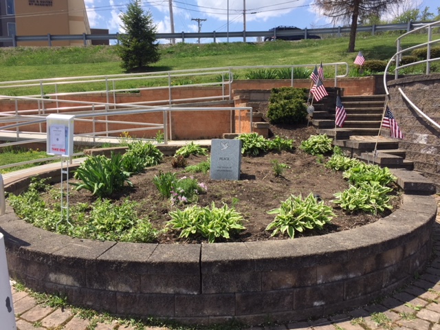 The large flag raised June 27 only lasted until July 6, 2018. Again high winds damaged the fly side of the flag. David Jones and Stew Saylor managed to get the large flag down and the winter flag raised. The Committee raisded a cotton flag on July 8, 2018 and continued to work on site cleanup of the well watered vegitation.